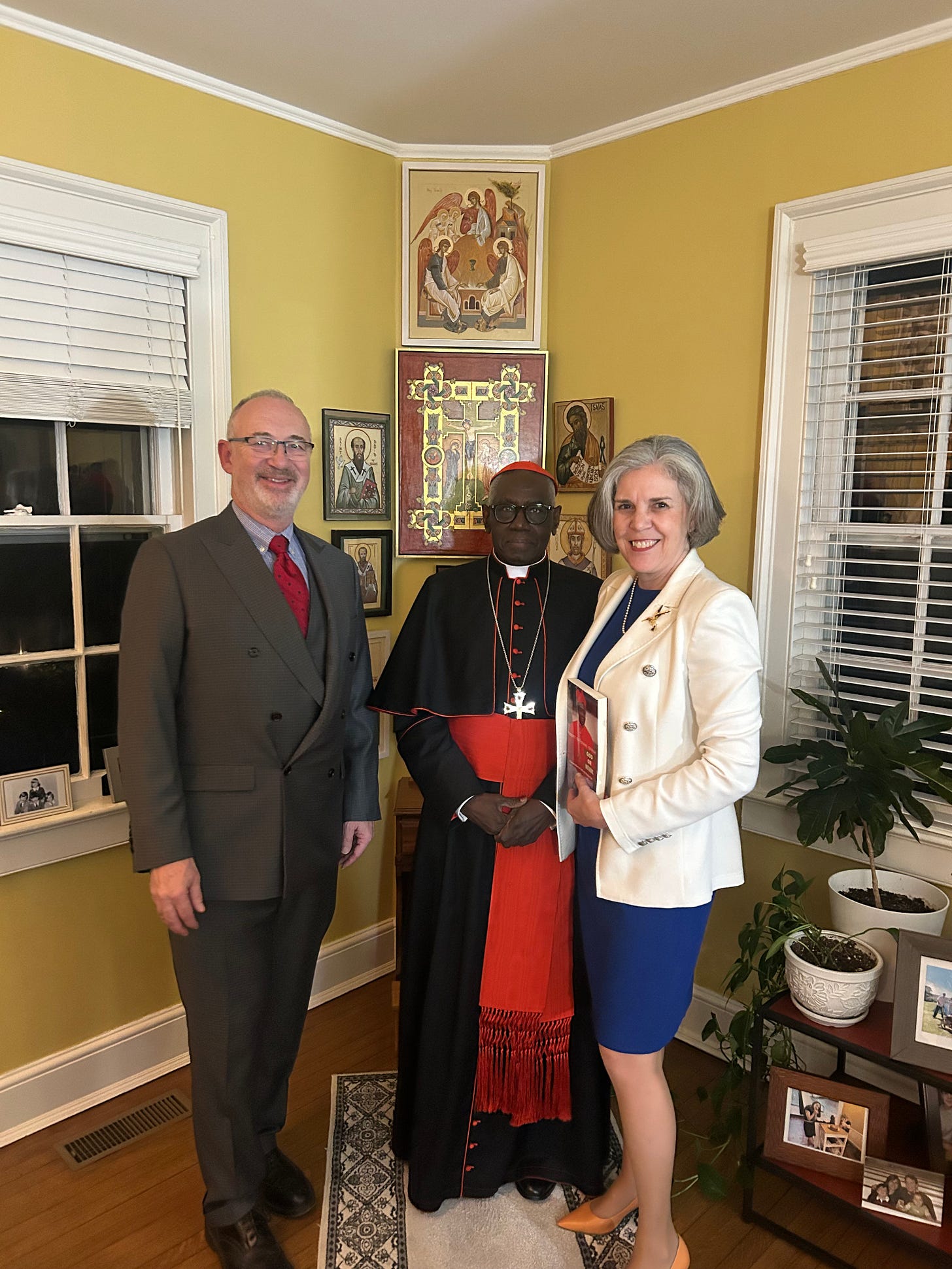 On November 22, 2025, David and I were honored to host Cardinal Robert Sarah in our home for dinner with about 12 guests. Earlier that afternoon, he reminded a packed auditorium at Princeton University of the meaning of the Incarnation: the divine has entered human history in the person of Jesus Christ. Because of the mediation of Christ, we are capable of a great intimacy with God. But, too often, we fail to appreciate this mystery, much less participate in it with reverence at the sacred liturgy.