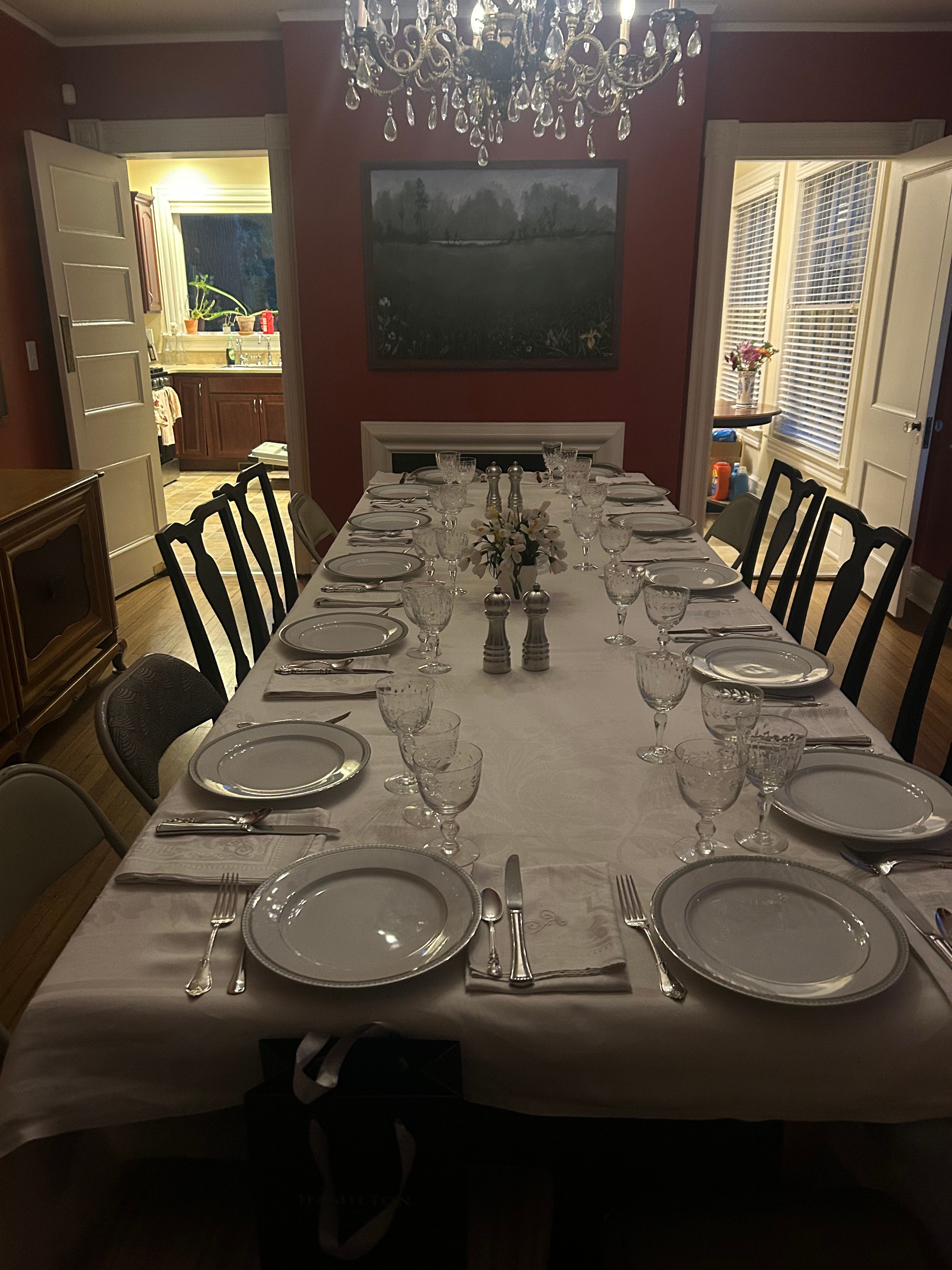 Once I sat down at the table, all the hard work of many hands flowed together to make a perfectly relaxed and enjoyable evening. Was it flawless? No. For one thing, my first pot of coffee was so weak it went down the drain. A guest took over, making it much stronger.