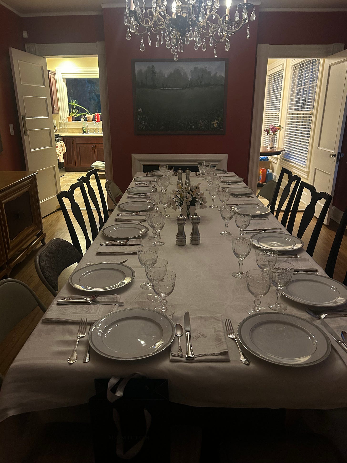I mean, it’s not everyday I set the table like this. But when I do, I’m grateful to have my great-grandmother’s linens and my grandmother’s silverware. The china we received as a wedding gift dresses up the table. Is this extravagance? I think it’s elegance, a beauty that is simple and inviting, special but not ostentatious.