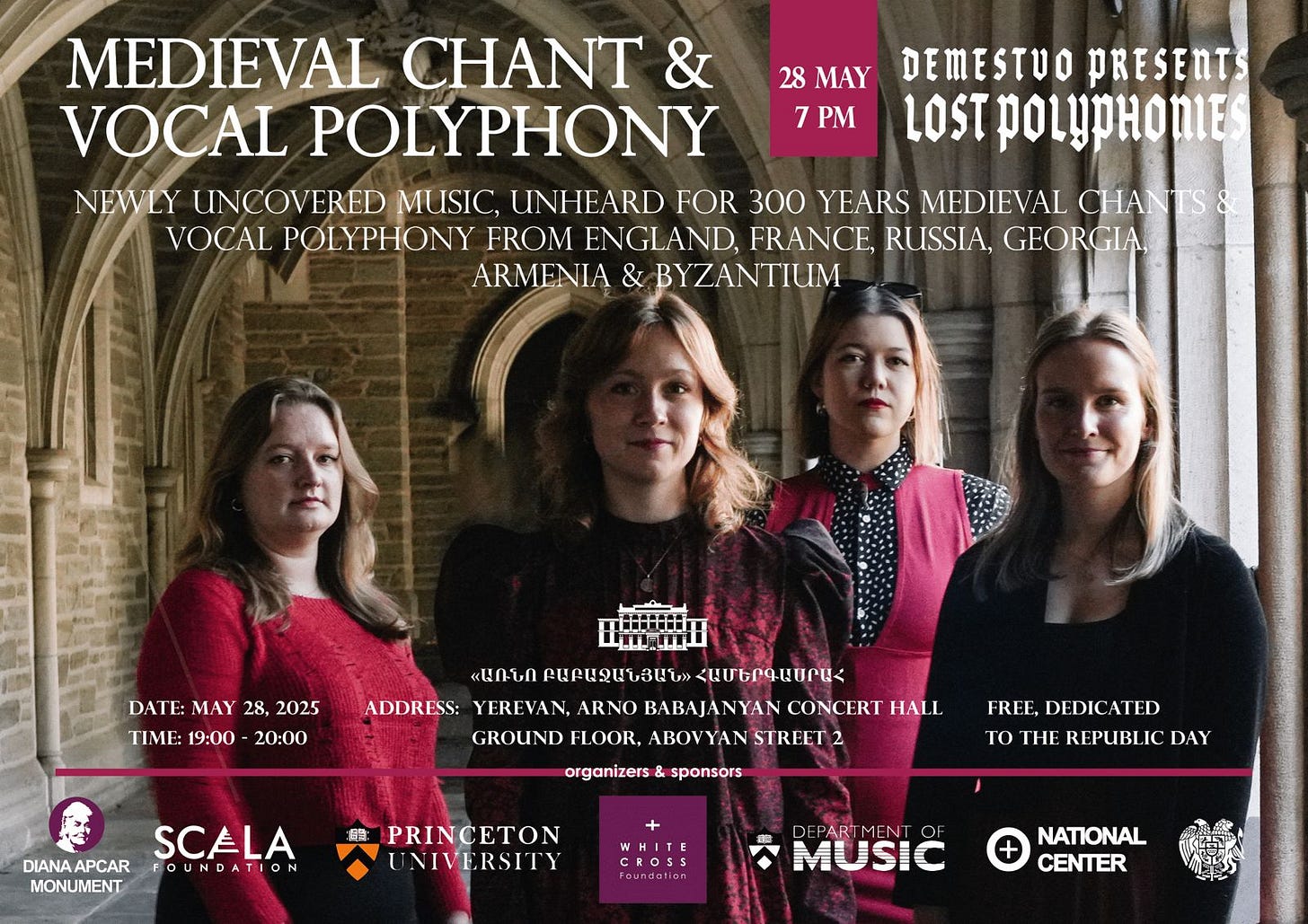 Scala was delighted to support the choral ensemble Demstevo who traveled to Aremenia and Georgia to learn and perform. A former Oxford student now back in Armenia hosted the group and sent me regular updates. I’m honored to sing in the choir with two of these amazing vocalists in Princeton and support their work making great music around the world! You can hear their music from this tour on Instagram and their 2024 concert in Princeton on Scala’s YouTube channel.